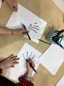 We have been learning all about colour as part of Art & Design over the last few weeks.  This links nicely to our French learning where we can recognise and say most of the colours in French.  We made a class colour wheel with things from our classroom.  We made our own colour wheels.  We learned that mixing two primary colours makes a secondary colour and looked at where these go in the colour wheel.  Next we looked at hot and cold colours.  We are going to use cold and hot colours in a piece of art work which we started this week and are looking forward to finishing off in our next few lessons.  Below you will see us matching French colour words to the right colour and playing colour splat.