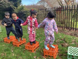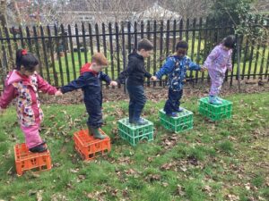 This week we visited the woodland together with a focus of balance on our minds. The children were asked to think about ways they could show balance with their bodies, how to hold a balance when moving and to create smaller and higher areas for balance.