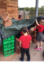 To start the week off, our imagination drove our need to build a shelter after our pirate ship sank due to horrible weather in the oceans, thankfully we found some land and we began our quest to make shelter. We worked very well as a team to achieve our end goal. There was lots of fabulous imaginative play going on!