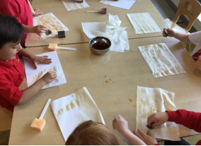 Some of the children asked to make a map for the pirates so we started the process of making our very own pirate maps by staining plain paper with tea bags! This makes them look really old. It was very messy but fun!!