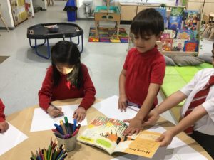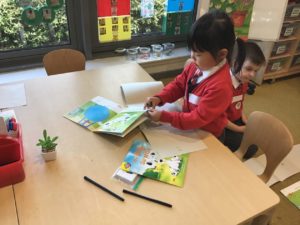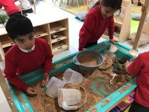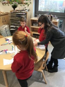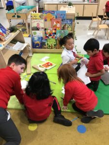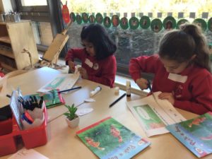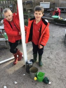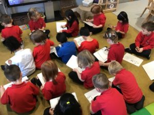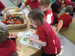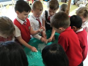 We read the book ‘Winston of Churchill, One Bears Battles Against Global Warming’ and this gave us a good insight into global warming. We have decided to make some changes in our classroom and we made pledges that we will, use both sides of the paper, recycle old toys, bin all rubbish and recycle. We also explored the properties of water and noticed how quickly ice melted when we added water or held it in our hands. This helped us to understand what was happening to the polar bears ice. We have been doing a great job of carrying out our pledges!