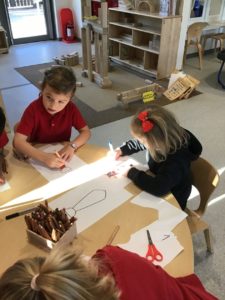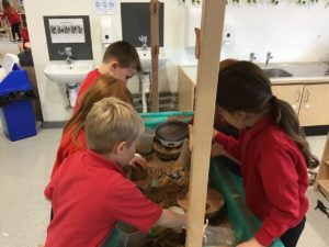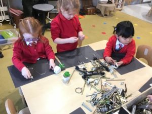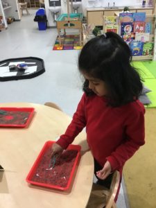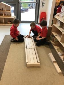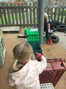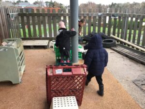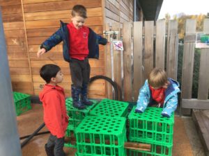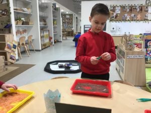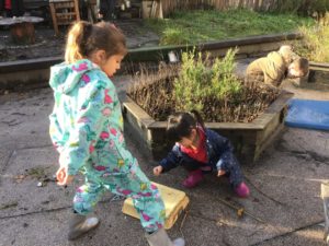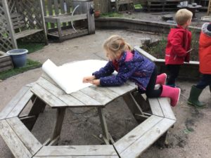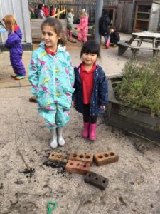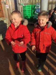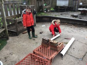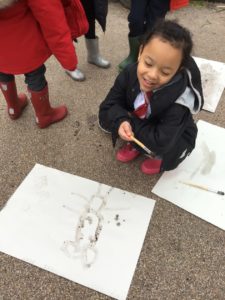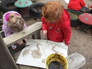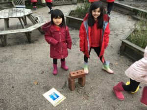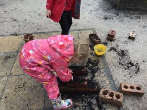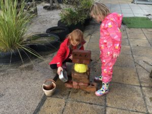 Outdoors this week as it was very icy so we decided to go on an ice hunt. We found lots of ice and create ice cream, ice painting and looked at the different ways we could make the ice melt quickly. We also enjoyed creating different landmarks outdoors as well.