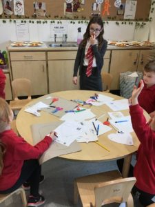 Some pupils from Primary 6 came down to talk to us about the work they have been carrying out as part of anti bullying week. They explained to us about the importance of being kind and they helped us to send a thank you note to somebody who been kind to us.
