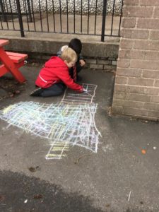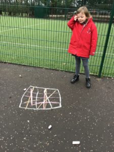 This week, we also learnt about burns day. We enjoyed creating our own class tartan on the computer and creating our own tartan patterns outside using chalks.