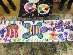 We have been looking at different artists and the techniques they use to create their paintings. We created our own Steven Brown themed under the sea art work, we think they look amazing!