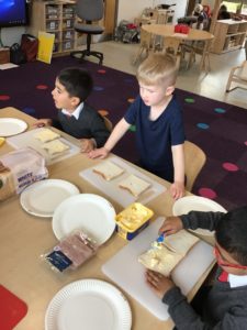 We had great fun preparing our sandwiches for our picnic. We made sure we used our knife safely and took great care when spreading our jam or butter. We also made sure we cut our sandwiches super carefully! We had lots of yummy flavours like ham, cheese and jam! We enjoyed our picnic outdoors, were we enjoyed our super sandwiches, some biscuits and a story.