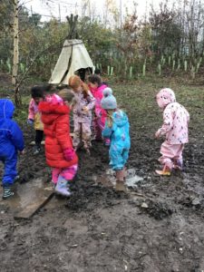 We also had great fun at Woodland, we enjoyed looking for animals and bugs using the binoculars and bug catchers from the woodland trolley and we of course loved jumping in the muddy puddles!