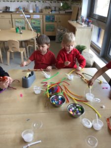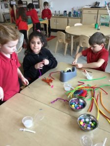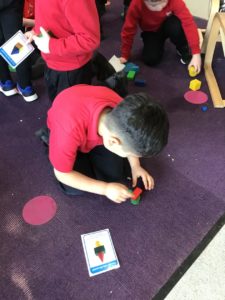 In Numeracy and Maths we have been learning about 2D shapes and 3D objects. We have been exploring the features of shapes and explored what 3D objects can stack and roll. Some of us created pictures with 2D shapes whilst others had a go at building a model with 3D objects.