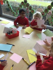 We designed our own Easter cards and then wrote them to a special person. We discussed how we write a card and what is important to include in a card.