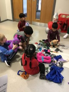 We started our day of activities by visiting the open area which had some lovely stories for us to explore and teddies to dress in an outfit suitable for an Eid celebration.