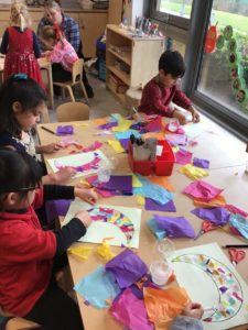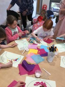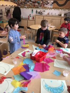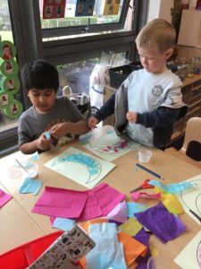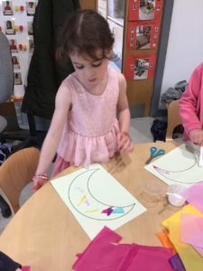 We then decorated a moon crescent with tissue paper. We have been learning about the importance of the moon to Ramadan and Eid.