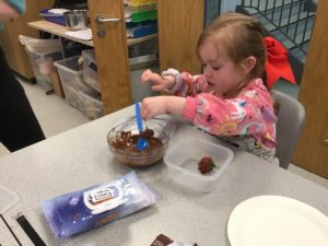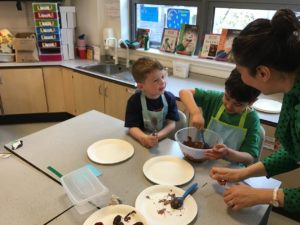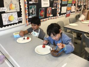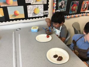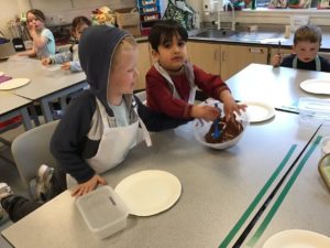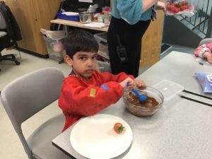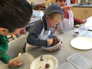 The highlight was making chocolate strawberries and dates. We loved dipping them into the chocolate and were very excited to eat them after school.