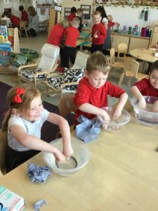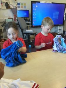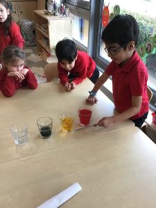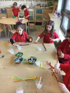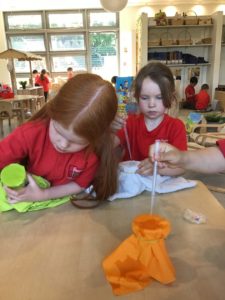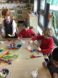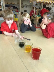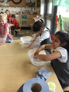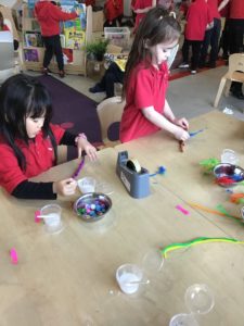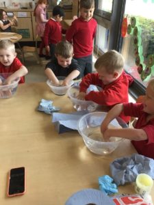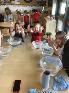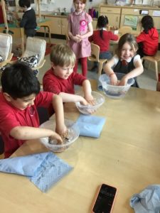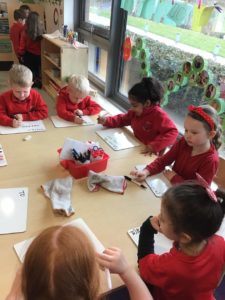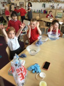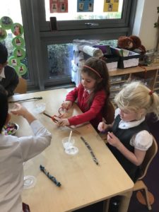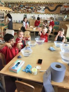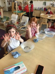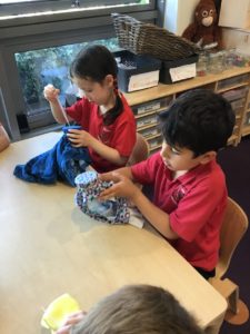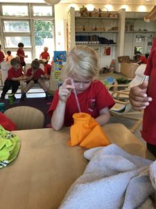We have been reading ‘Eric Makes a Splash’ and enjoyed creating some swimwear which Eric would like to wear in the swimming pool. Eric feels worried about going in the pool so some new swimwear might help him with his worries. We then tested different materials to see how waterproof they are and discussed which material would be the best for Eric’s swimwear.