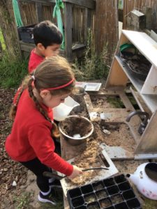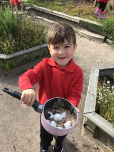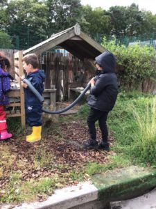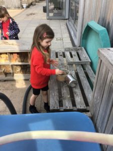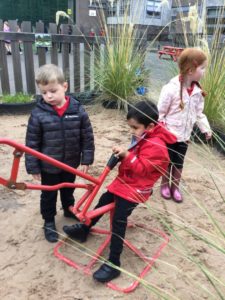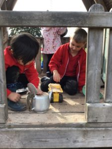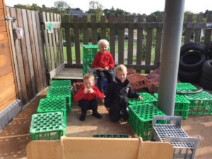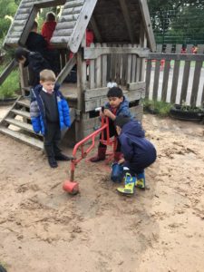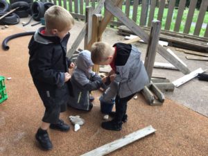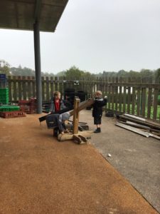 We also had great fun outdoors this week! Our kitchen was open again with lots of tasty mud pies and ice-cream on the menu. We also displayed some great problem solving and building outdoors this week too.