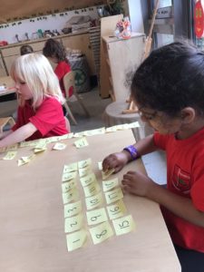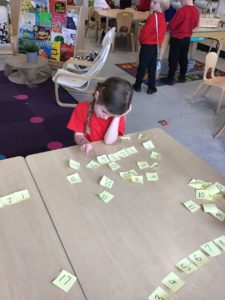 In Numeracy and Mathes, we have continued learning to recognise numbers 1-20 and practised sequencing numbers and identifying the missing number. We have also looked at the number before and after and used the number fans in class for the first time.