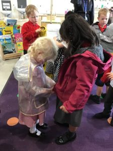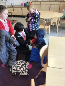 In Health and Wellbeing we are developing our Growth Mindset. We spoke about not giving up when we are stuck and we used our jackets to help us learn about this. We worked with our partners and helped each other if we found it difficult to get our jacket on. Mrs Agnew and Miss Regan did make it extra challenging by turning our sleeves inside out 🙂
