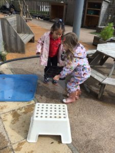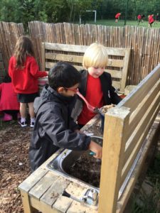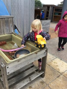 We also had great fun outdoors this week! Our kitchen was open again with lots of tasty mud pies and ice-cream on the menu. We also displayed some great problem solving and building outdoors this week too.