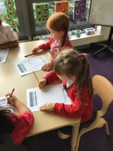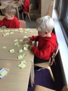 In Numeracy and Mathes, we have continued learning to recognise numbers 1-20 and practised sequencing numbers and identifying the missing number. We have also looked at the number before and after and used the number fans in class for the first time.