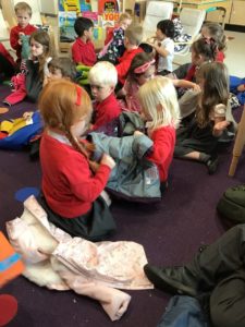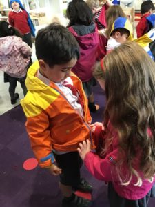 In Health and Wellbeing we are developing our Growth Mindset. We spoke about not giving up when we are stuck and we used our jackets to help us learn about this. We worked with our partners and helped each other if we found it difficult to get our jacket on. Mrs Agnew and Miss Regan did make it extra challenging by turning our sleeves inside out 🙂