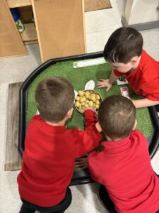 P1C have been having lots of fun learning through our story of Super Tato! Our classroom has been filled with exciting, themed activities that help us learn across different areas — from making traps for evil pea in the construction area, weighing veggies, threading evil pea, counting potatoes in maths and creating our own superhero characters.