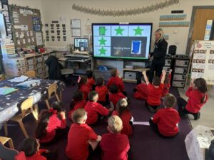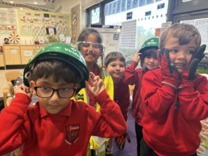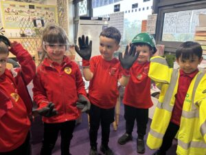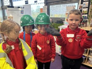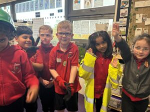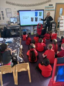 P1C were kindly visited by Mrs McLean who taught us about recycling and her job at Viridor. We discussed how to correctly sort rubbish and materials into specific coloured bins. We loved hearing about the big machines that help with recycling larger quantities of rubbish and trying on some of the safety equipment from Viridor.