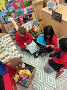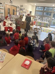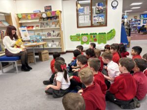 The children listened to some very funny stories and were delighted to receive their Read Write Count bags which they proudly carried back to school.