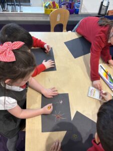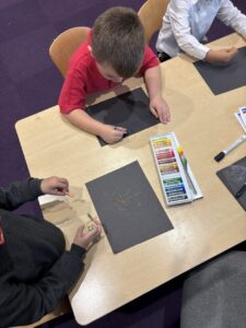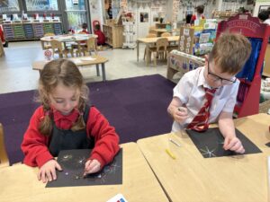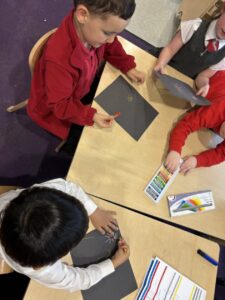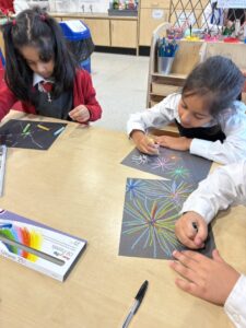 Back at the start of November we created fantastic firework pictures using oil pastels. We used various lines and colours to create the look of the firework in the sky. We also discussed the importance of safety during firework night and how we can keep ourselves and others safe.