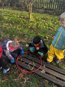 Another lovely week. This week in woodland we were focussing on what nature entails. We were using our hoops to investigate what we could see on the ground (we had creative thoughts of hanging the hoops on the trees to look through and see what we could examine!).