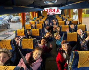 We all had so much fun on the day. Take a look at us all ready on the bus heading to the Church!