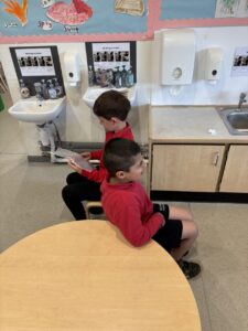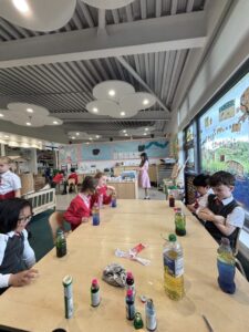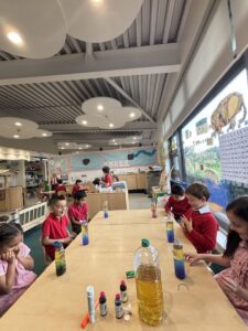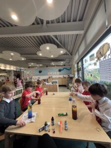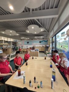 We followed instructions to make lava lamps and watch as we dropped in fizzing tablets to activate them.