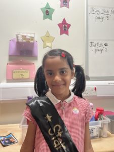 At the sushi shop someone gave me £5 and the salmon and the seaweed sushi cost £4. I gave them £1 change. – O