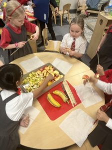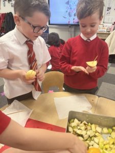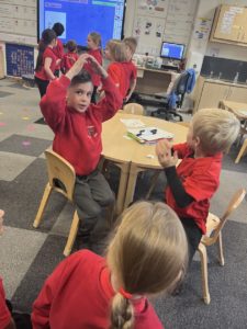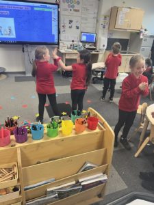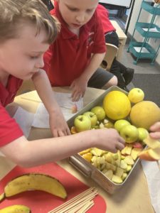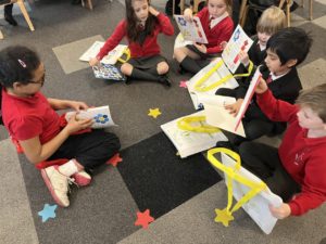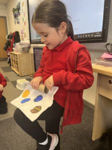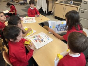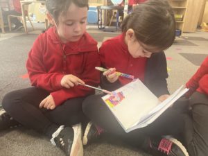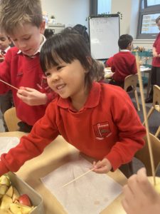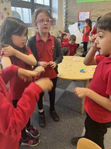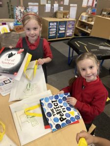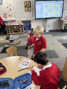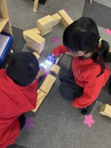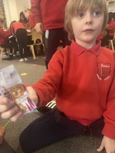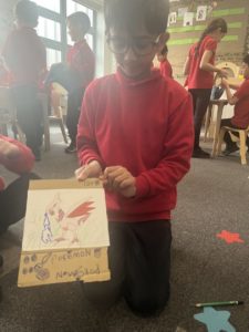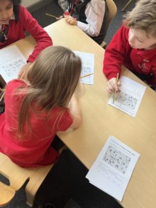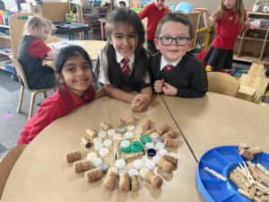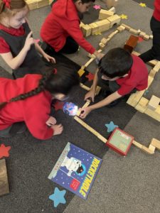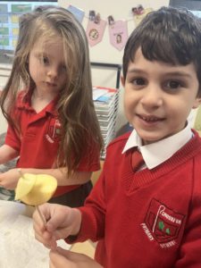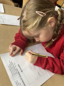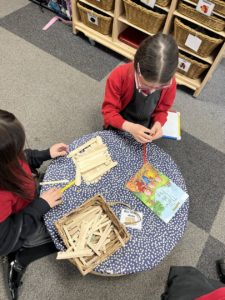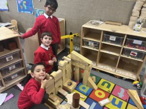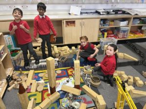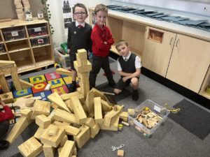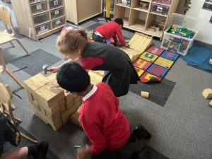 We were making the houses from the Three Little Pigs. The houses were built of straw, sticks and bricks. – F
