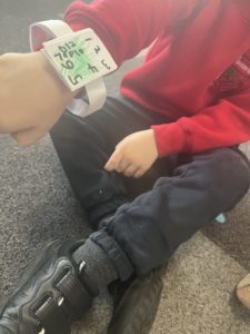 We worked on Target Numbers for our Number Talk. We had to chose a number then you would figure out how to make it with calculations. – J