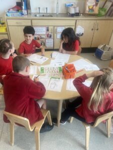 Every day, we work in groups on a numeracy activity before we start our lesson whilst one group works with Mrs McAra/Mrs Grieve on learning a strategy for adding or subtracting. We rotate the challenges every day and Mrs McAra/Mrs Grieve will work with a different group each day too, so we all get a shot at everything.