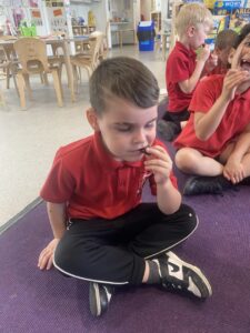 We did another taste test this week to identify bitter, sweet, sour and salty tastes! We enjoyed trying some dark chocolate, lemon, crisps and honey and discussing what taste we thought each was.