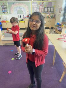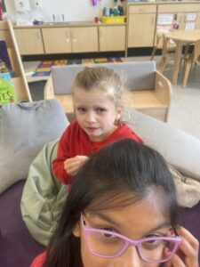 We read a book called ‘Hassan and Aneesa Celebrate Eid’. In the book they made paper chains to decorate their house. We made some in class, too.