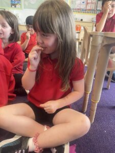 We did another taste test this week to identify bitter, sweet, sour and salty tastes! We enjoyed trying some dark chocolate, lemon, crisps and honey and discussing what taste we thought each was.
