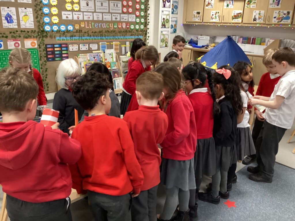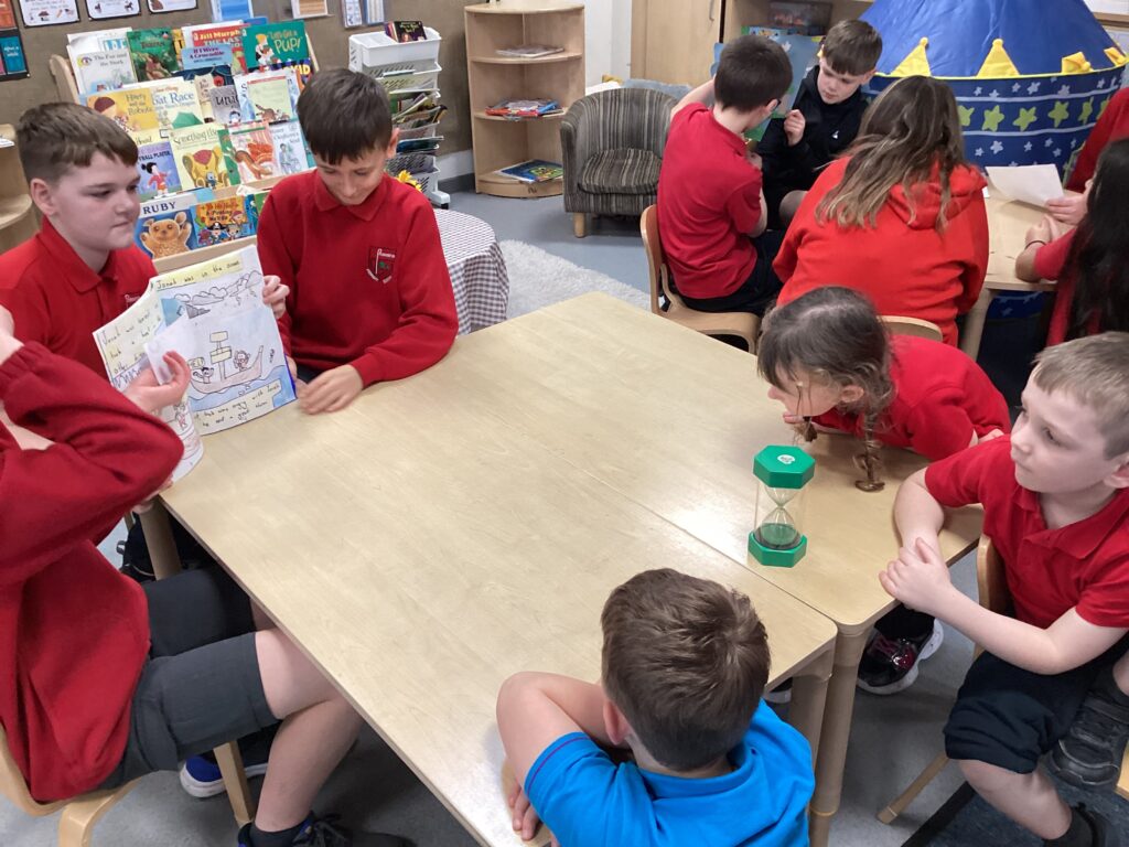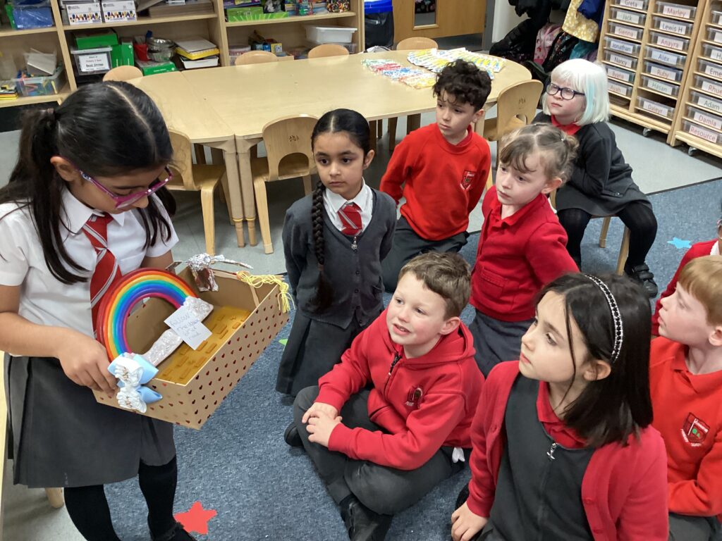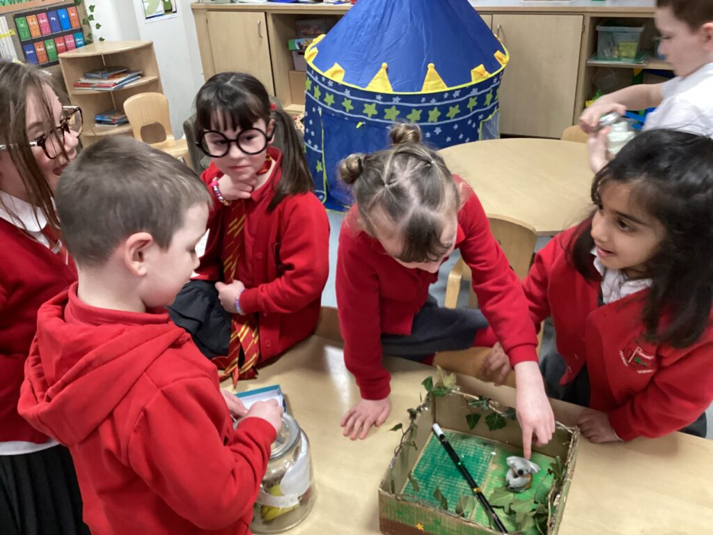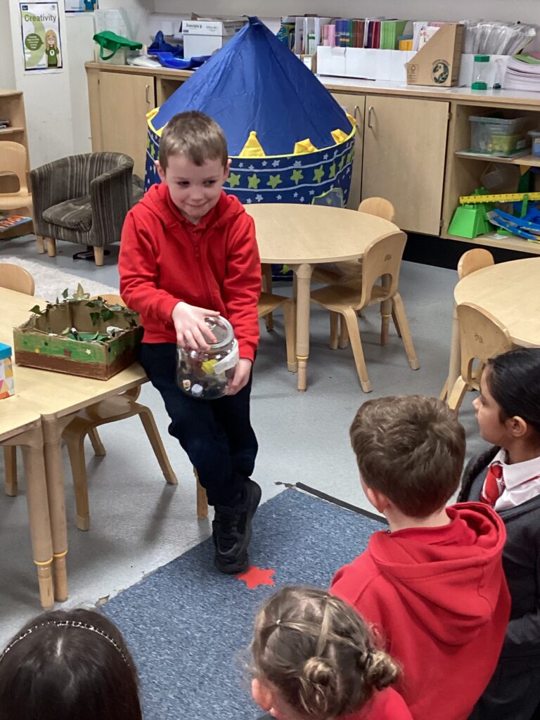 We love to explore the world of books and storytelling in P2b and today was full of sharing our imaginations and creativity. The ‘Story in a box/jar’ competition entries were fantastic and the children had a very sociable and fun time together looking at these together in class and taking part in the school book swap.
