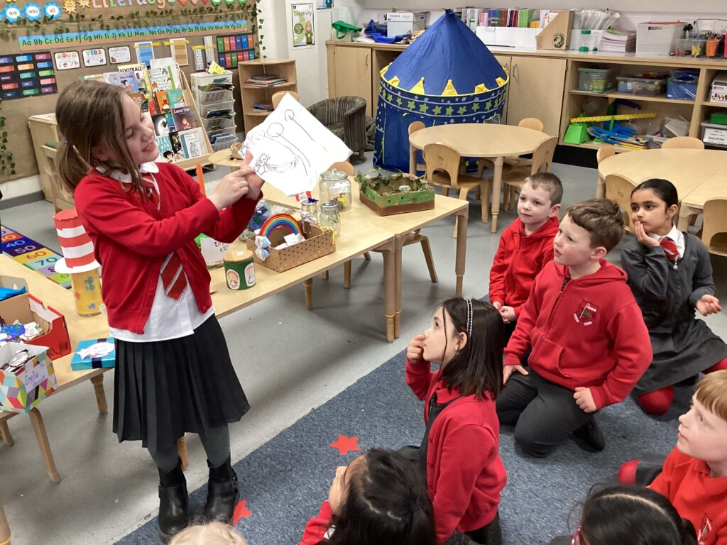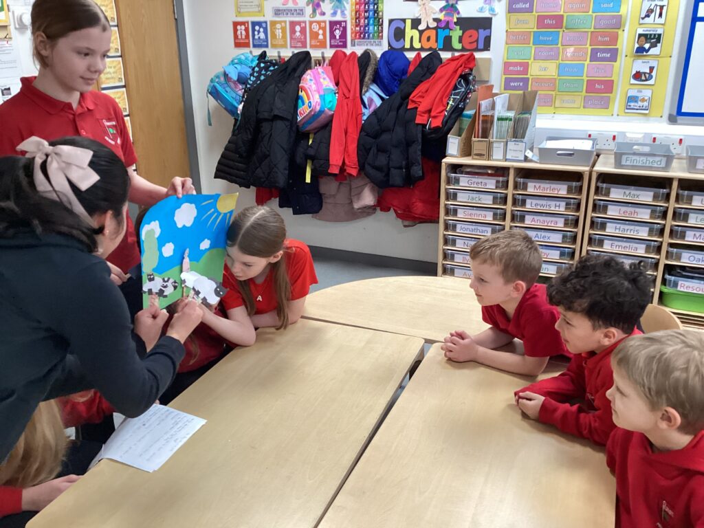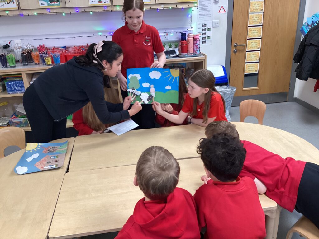 We were so lucky to have P7c visit our class to share their fantastic interactive storybooks. The children in P2b were very impressed and inspired by the creativity and detail in all of the stories and loved the opportunity to spend time with senior pupils in the school.