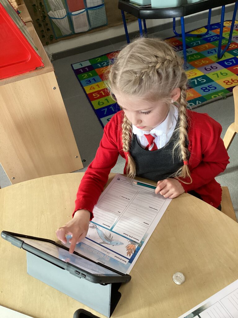 Over the past few months, we have been familiarising ourselves with using the school ipads as a tool for learning. The children are steadily building their confidence in identifying and using a variety of literacy and numeracy apps and exploring search engines. We are currently focused on developing our creativity and skills in building code through programmes such as Scratch Jr. They loved making their own ‘Under the Sea’ project on Scratch, where they could programme sound and movement to their Scratch sprites.