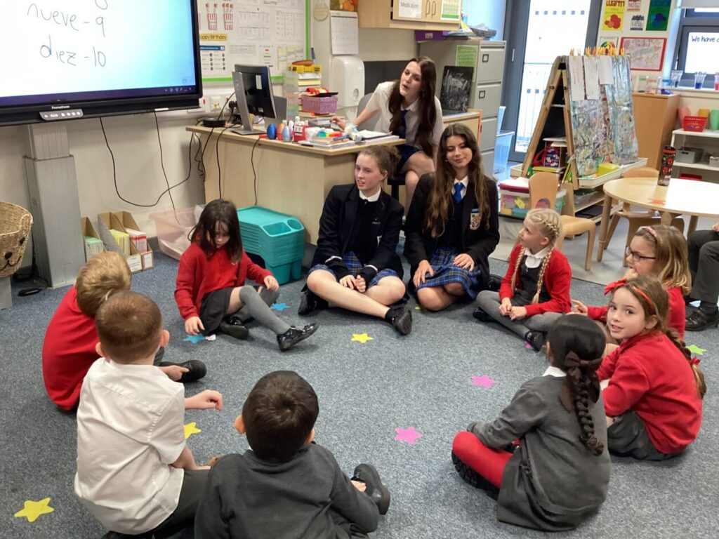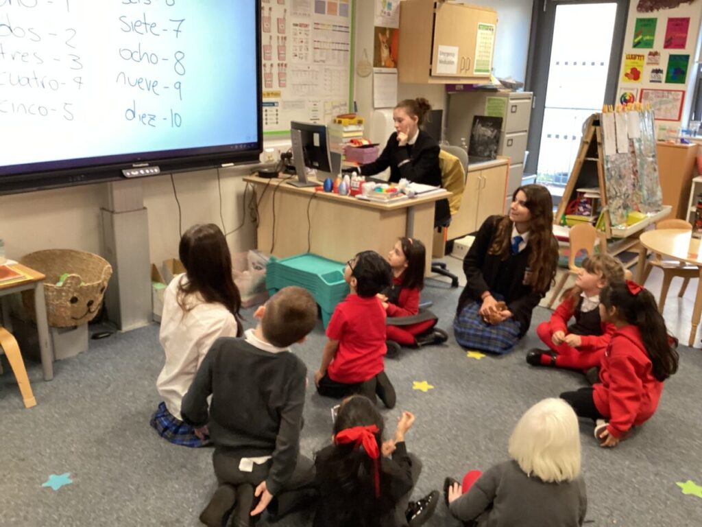 Primary 2 are very lucky to have a number of S6 students from Eastwood High Language department teaching them Spanish on Monday afternoons through the month of November. We were delighted to have the opportunity to learn more about Spanish culture and the language in a very active and engaging session and are really looking forward to next weeks lesson already 🙂