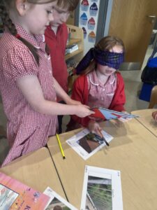 We have been exploring our local area in class by looking at maps and images. With the help of some parent helpers we went out to explore our local area and used our five senses to help us identify what made our area so special.