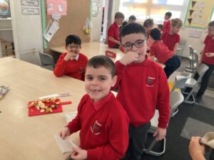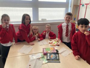 We have been learning to write instructions over the past few weeks and were able to write clear and easy to follow recipes. One of our favourites was “How to Make a Fruit Kebab.” We loved eating the fruit at the end too! We have now moved on to writing a recount .
