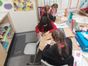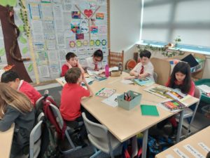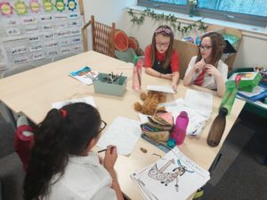 Aria – In HWB, we were drawing trees and describing what a good friend is e.g. happy and then we wrote our friends’ names in the trunk.