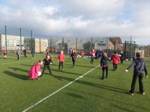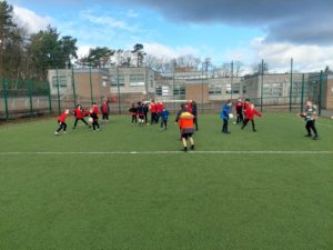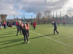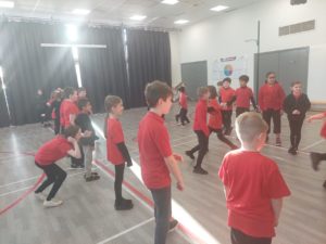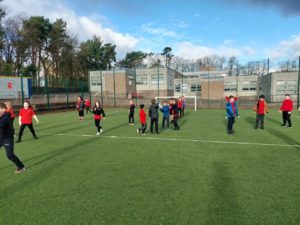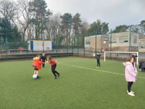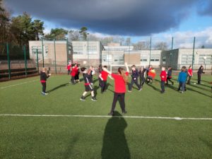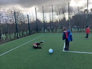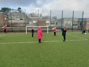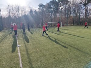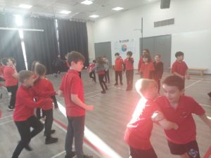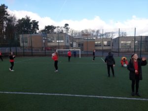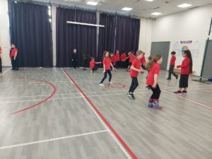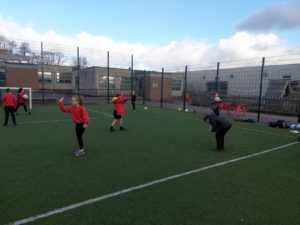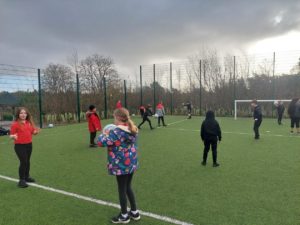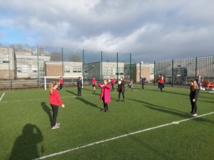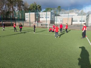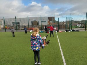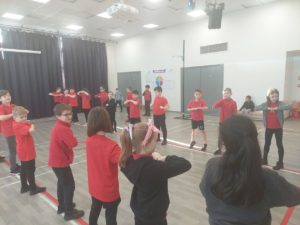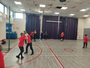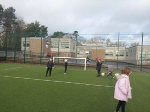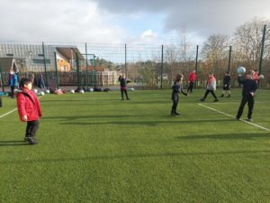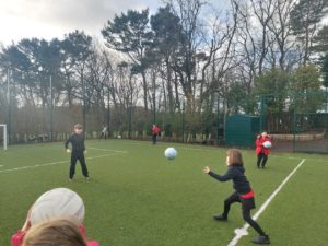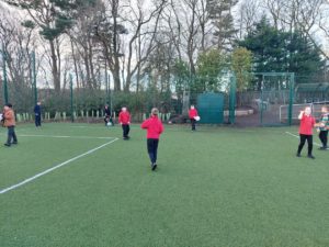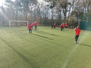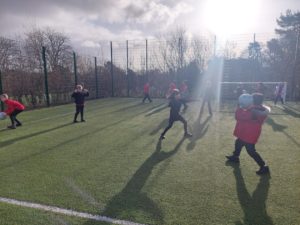Lilian – In PE, the MUGA was split in to 2 halves and 1 half was rounders and the other was football. Then we came inside and London and Kerr gave use a lesson about Tae-Kwon-Do.