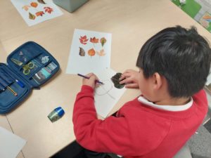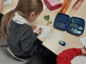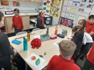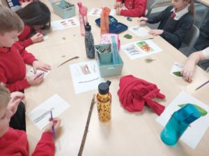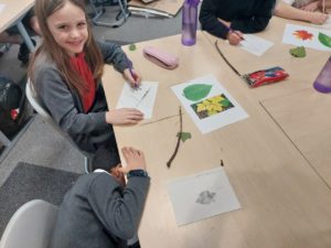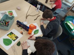 Harry – For Art, we went in the woodland to collect 3 objects. Then we made a sketch of the objects to create a new picture.