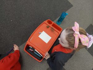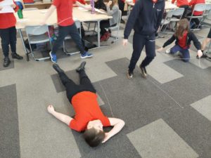 Kerr – In PE, we used the parachute to play games. We had to run in to different spaces. We also played a game with the mats called pirates.