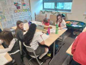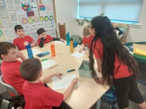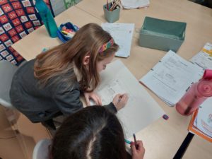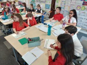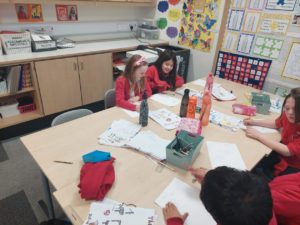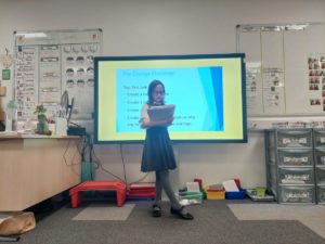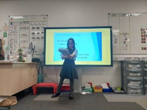 Scarlett and Gurleen have been practising their calligraphy at home and asked if they could teach this skill to the class. Using their own resources, including a Flipchart and video, the girls led a lesson on Friday afternoon.