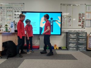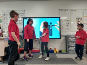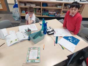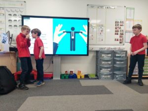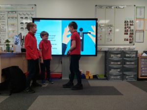 Max M – In HWB, we were watching a video about a boy that got a present which was a dog but the dog only had 3 legs. Then the boy threw the dog on the floor but after we realised that the boy was the same as the dog because he had one leg missing. We looked at how quickly our emotions can change.