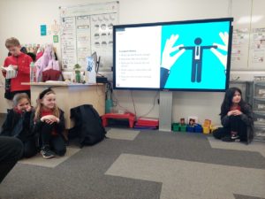 Jace – In Music, we were learning a new beat and at the start of music we played a ball game where we could sing a song called “how many buses are in the station”.